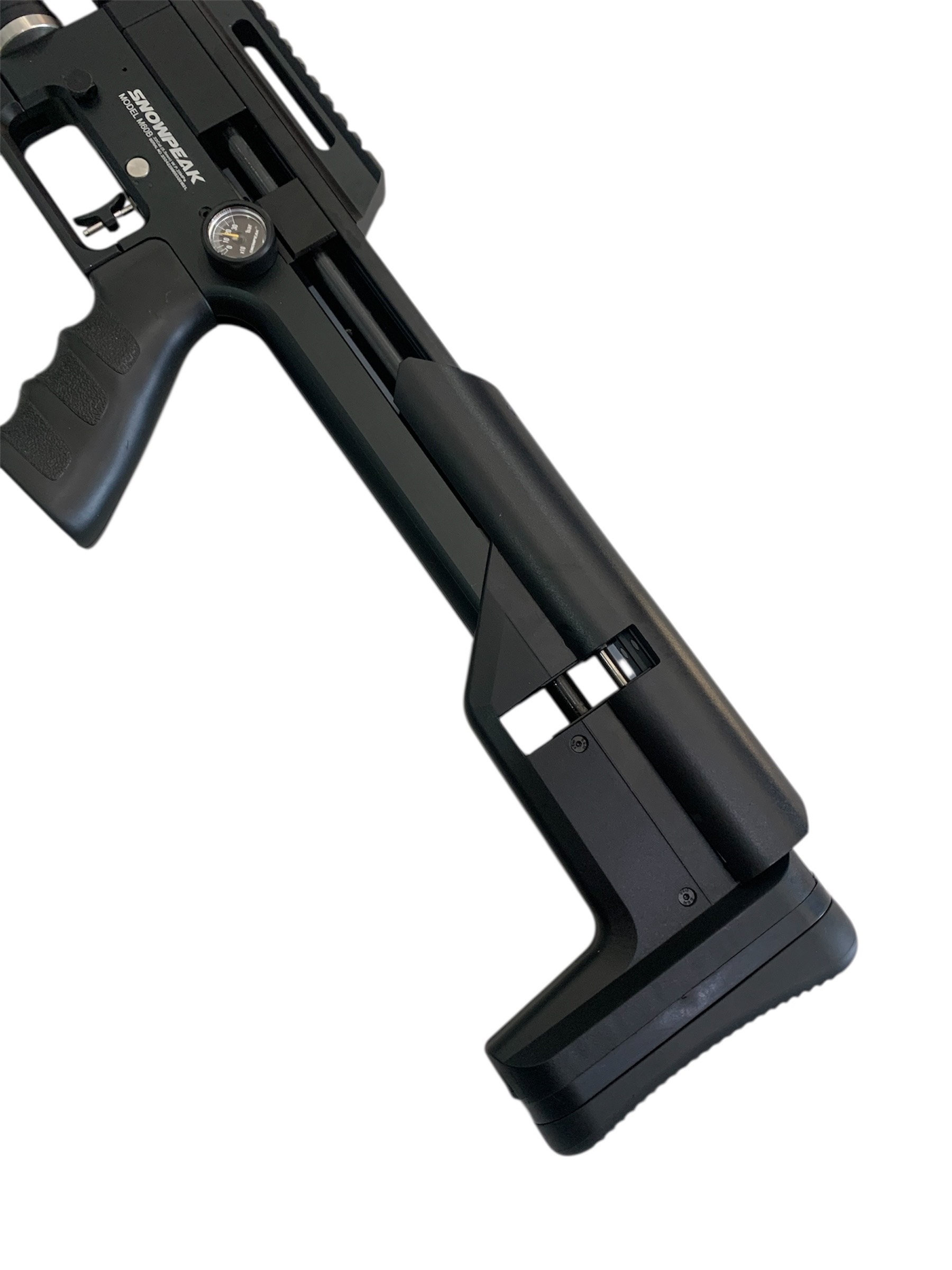 Diseñado con un sistema PCP, el M60B ofrece una acción de disparo suave y constante. Su culata de polímero proporciona ligereza y durabilidad, asegurando que puedas manejar el rifle con comodidad durante largas sesiones de tiro. El modo de disparo SIDE LEVER permite una recarga rápida y sencilla, ideal para aquellos que buscan un manejo ágil en el campo.